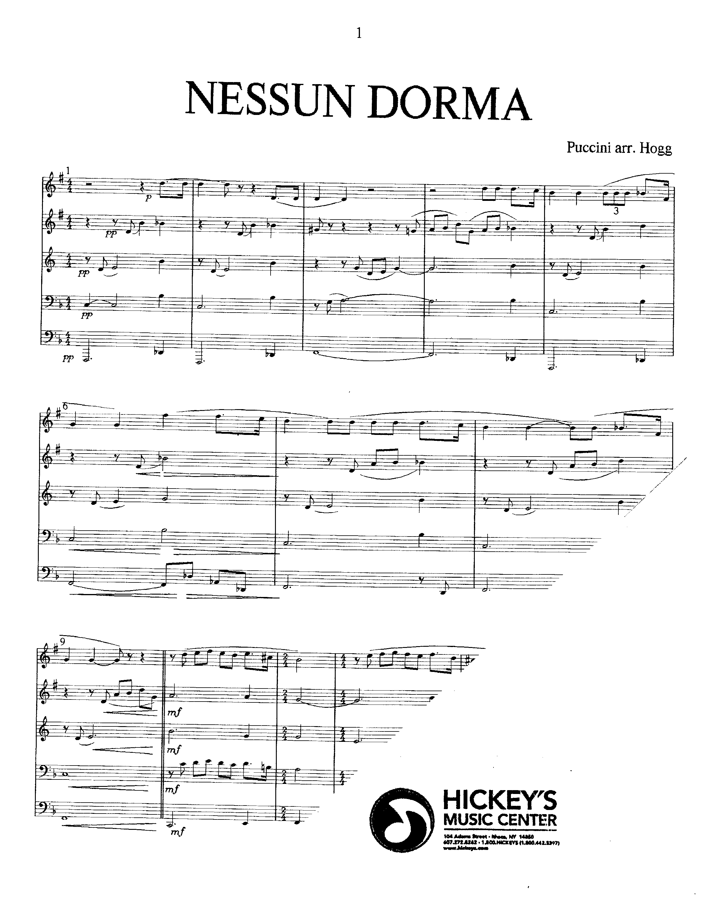 Puccini, Giacomo (Hogg) Nessun Dorma, from Turandot