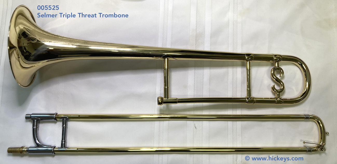 Used Selmer Triple Threat small bore trombone. Manufactured in Elkhart, Indiana, circa 1939-1945.