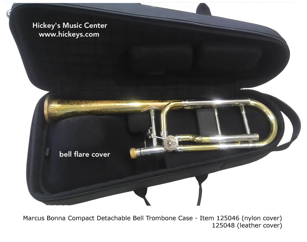 • Fiberglass shell • Replaceable leather cover • Adjustable foam blocks for perfect fitment • 2 handles • Music pouch w/stand straps • 2 backpack straps • Mouthpiece pouch • Leadpipe pouch for 2 leadpipes • Identification tag